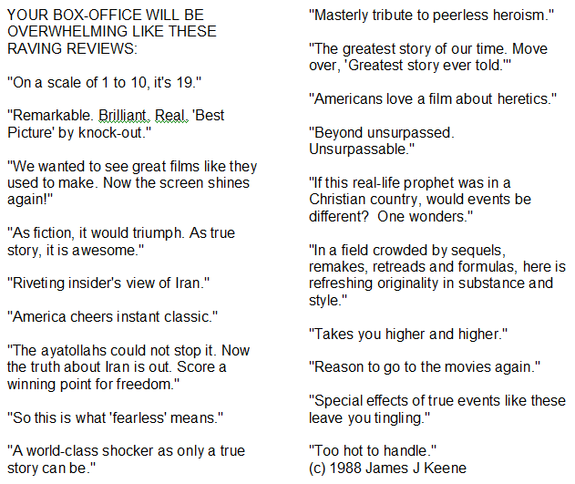 Is there any limit here? Even before a film is made, one can help people see the potential of the project by writing what reviewers might say: