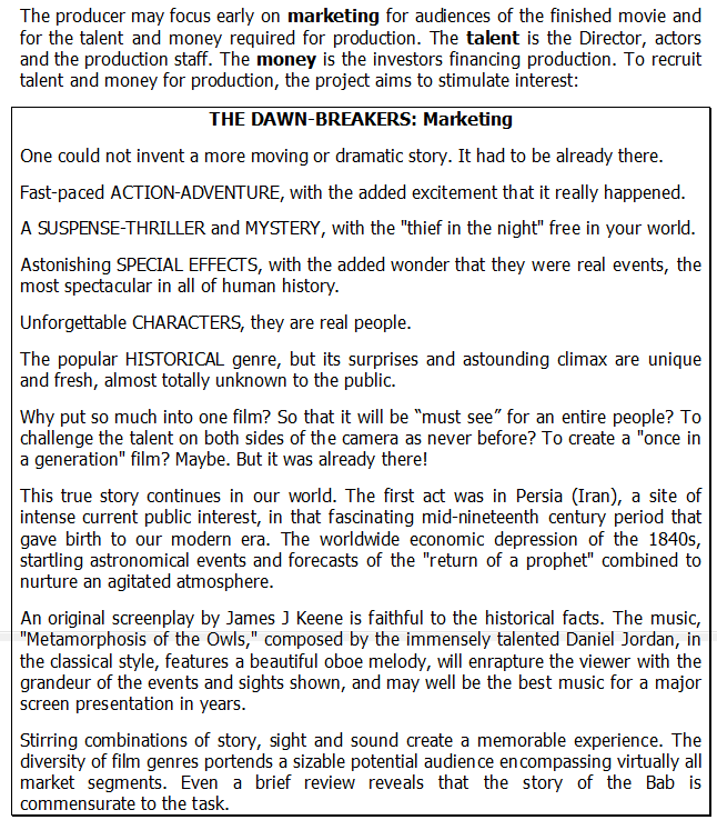 - While writing the screenplay in early 1986, I wrote to the Universal House of Justice (UHJ) at the Baha’i World Centre in Haifa, Israel describing the project and posing several questions about their view of the project.